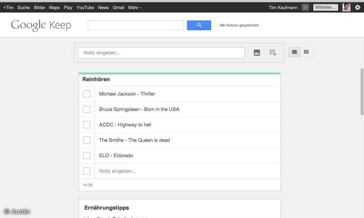 Google Keep Standardansicht