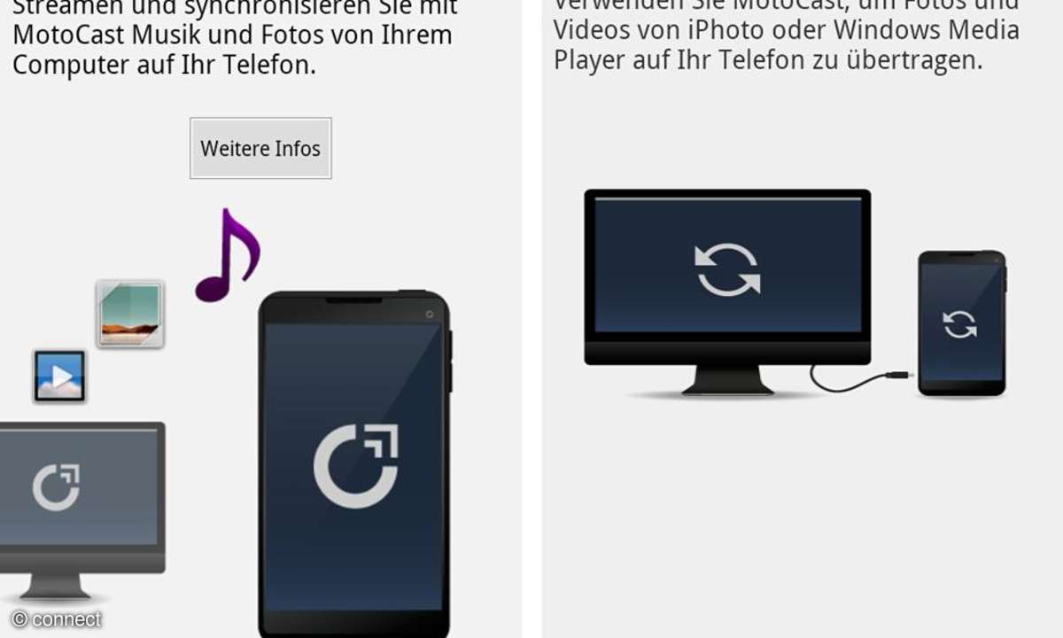 Ein weiteres Extra ist die Funktion Motoprint, die den drahtlosen Ausdruck auf Modellen von HP und Epson erlaubt. Außerdem findet man die Bild-App vorinstalliert - wer lieber anders liest, kann sie aber problemlos entfernen.