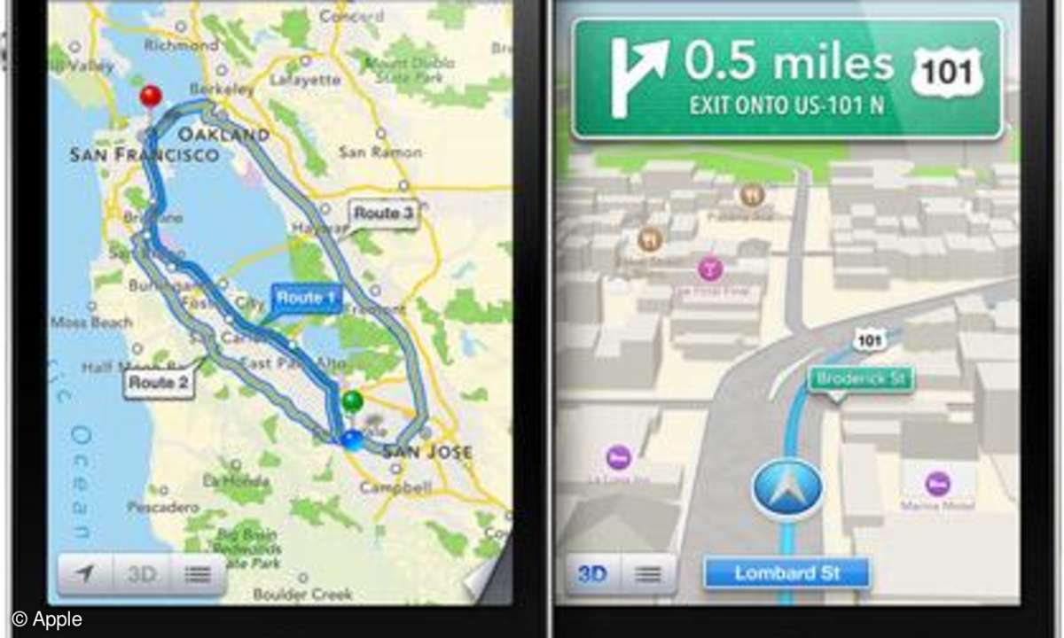 Eine der spektakulärsten Neuerungen von iOS 6. Mit seinem grundlegend überarbeiteten Kartendienst Maps beendet Apple die Kooperation mit Google, die immerhin seit dem ersten iPhone 2007 bestand, und setzt künftig auf eigene ortsbasierte Dienste.