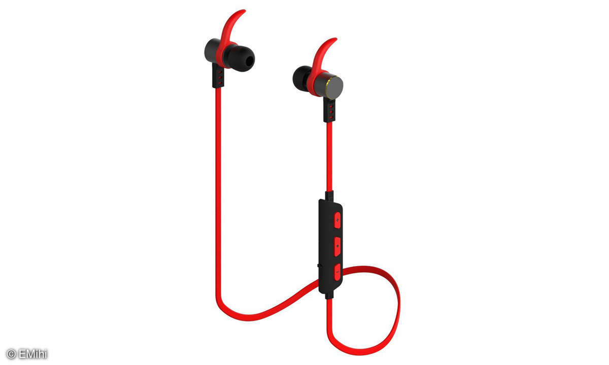 kaufenDie roten In-Ear-Kopfhörer sollen bis zu 3,5 Stunden Spielzeit ermöglichen. Eine Silikonlasche sorgt für besseren Halt im Ohr bei Bewegung, lässt sich aber entfernen.