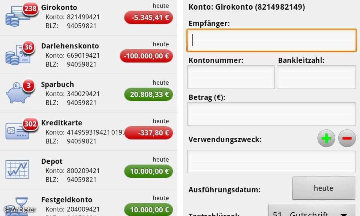Mit der App können Kunden fast aller deutschen Kreditinstitute ihre Konten abfragen, Überweisungen ins In- und Ausland tätigen, Daueraufträge einrichten oder Einsicht ins Depot nehmen. So lassen sich beliebig viele Konten mit einer Oberfläche bequem verwalten.