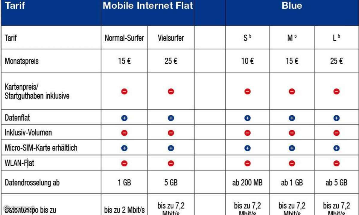 8 Gilt für Datenflat mit 3,6 Mbit/s. Bei Datenflat mit 7,2 Mbit/s wird ab 5 GB, bei 14,4 Mbit/s ab 7,5 GB, bei 21,6 Mbit/s ab 10 GB gedrosselt.
