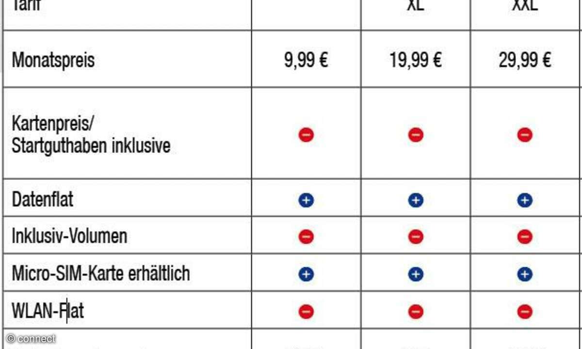 6 Der Monatspreis hängt vom Datentempo ab. Die Datenflat gibt's mit 3,6, 7,2,14,4, und 21,6 Mbit/s.
