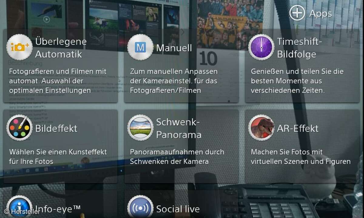 Das Kamera-Menü des Xperia Z1 lässt sich trotz sehr vieler Einstellungsmöglichkeiten, Filter und Optionen gut zu bedienen.