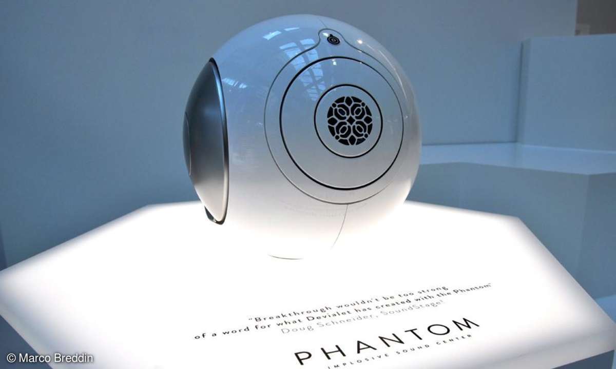 Eine Art Raumkapsel betritt man bei den Franzosen von Devialet. Die erstklassige Präsentation spielt geschickt mit Science-Fiction-Elementen und lässt die Zuhörer über die atemberaubend tiefe Basswiedergabe aus kleinstem Gehäuse staunen.