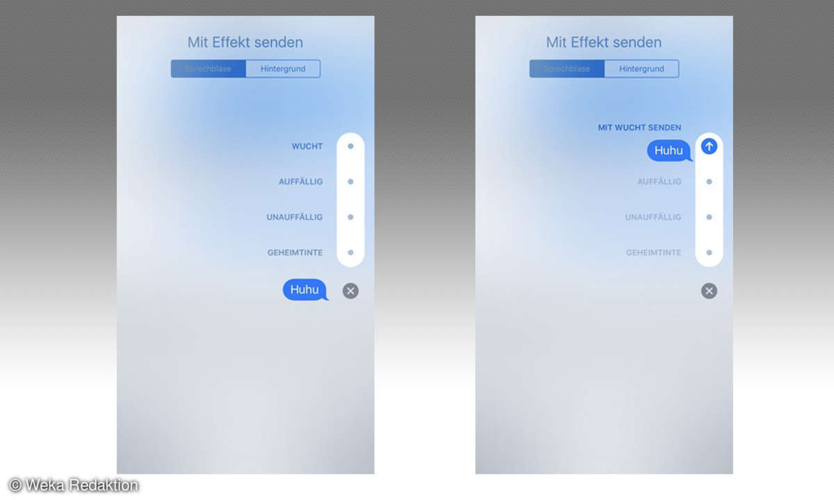 Über die neuen Effekte steuern Sie, wie Nachrichten beim Gesprächspartner erscheinen. Die Möglichkeiten:
