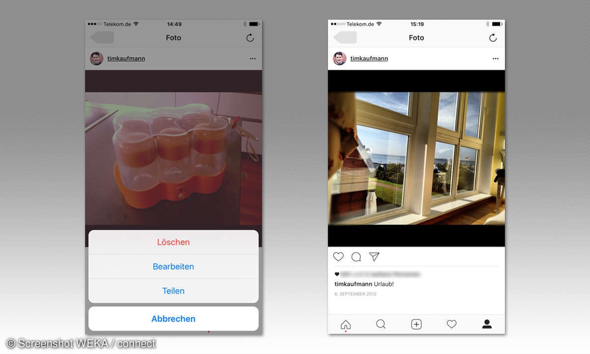 Besitzer eines privaten Profils sollten vorsichtig sein, wenn sie Bilder in anderen sozialen Netzwerken posten. Dabei erstellt Instagram einen Link zum Foto, den jeder abrufen kann, der ihn erhält. Die Einschränkung "privat" wird so für geteilte Aufnahmen außer Kraft gesetzt.
