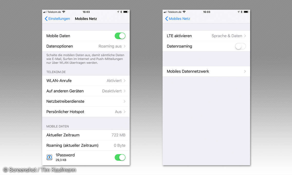 „Warte, ich maile Dir das kurz“ - mit diesem Satz beginnt so manche Enttäuschung. Die tritt nämlich dann ein wenn man feststellen muss, dass die Internet-Verbindung des iPhones während des Gesprächs tot ist, die E-Mail das Gerät mithin also nicht verlassen will. Tatsächlich ist nicht das iPhone schuld, sondern LTE. Hier gibt es Internet beim Telefonieren nur dann, wenn Sie die Gespräche über die LTE-Internetverbindung leiten. Dazu aktivieren Sie unter „Datenoptionen“ die Funktion „LTE aktivieren: Sprache & Daten“. Ob das geht hängt auch vom Mobilfunktarif ab. Ein Anruf beim Anbieter schafft Klarheit.