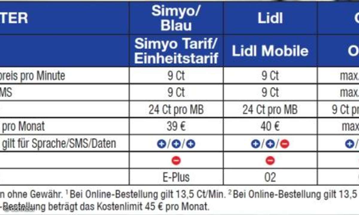 Die Handyrechnung ist zu hoch? Bei Simyo, Blau, Lidl und O2 sind Sie auf der sicheren Seite. Seit fünf Jahren fallen die Preise im Mobilfunk stetig, doch immer noch genug Handynutzer klagen über zu hohe Kosten. Viele der unzufriedenen Kunden fühlen sich im Tarif-Dschungel komplett verloren und harren in veralteten, überteuerten Verträgen aus. Das muss nicht sein: Es gibt auch Offerten, die für Transparenz und Kostensicherheit am Monatsende sorgen. Das jüngste Beispiel liefern die Mobilfunker Simyo und Blau: Deren E-Netz-Kunden zahlen für die Handynutzung maximal 39 Euro pro Monat. Der Clou: Das Kostenlimit gilt auch für Datenverkehr.