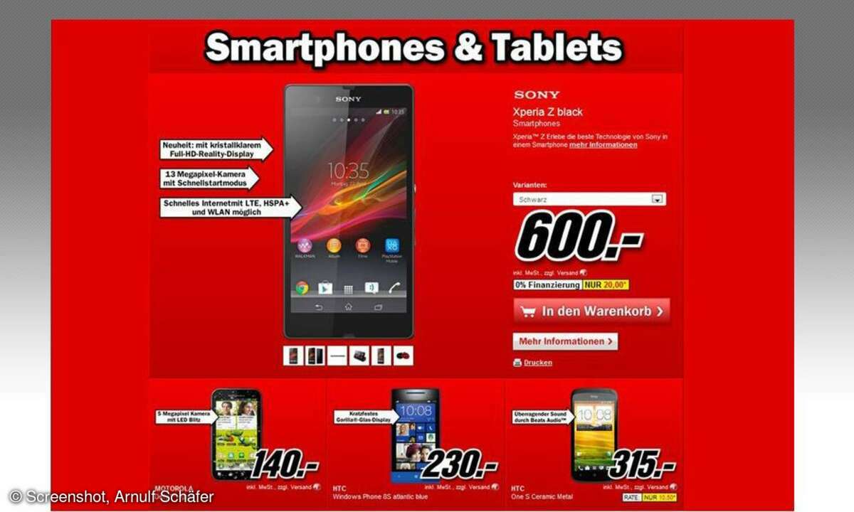 Im Media-Markt-Angebot: HTC One S, HTC Windows Phone 8 S, Nokia Lumia 820, Samsung Galaxy S3, Galaxy Note 2 und Sony Xperia Z. Echte Schnäppchen?