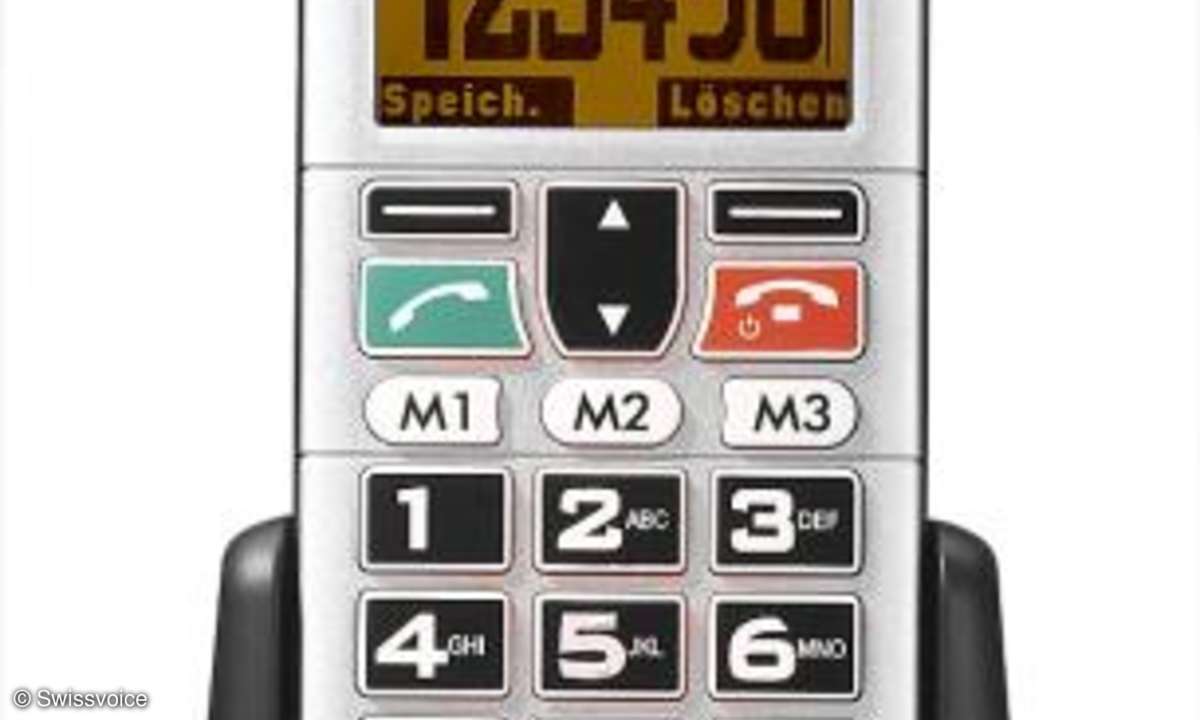 Besonderheiten: drei spezielle Kurzwahltasten; besonders laute Klingeltöne bis 100 dB; hörgerätekompatibel; rote LED bei fehlendem Netzempfang