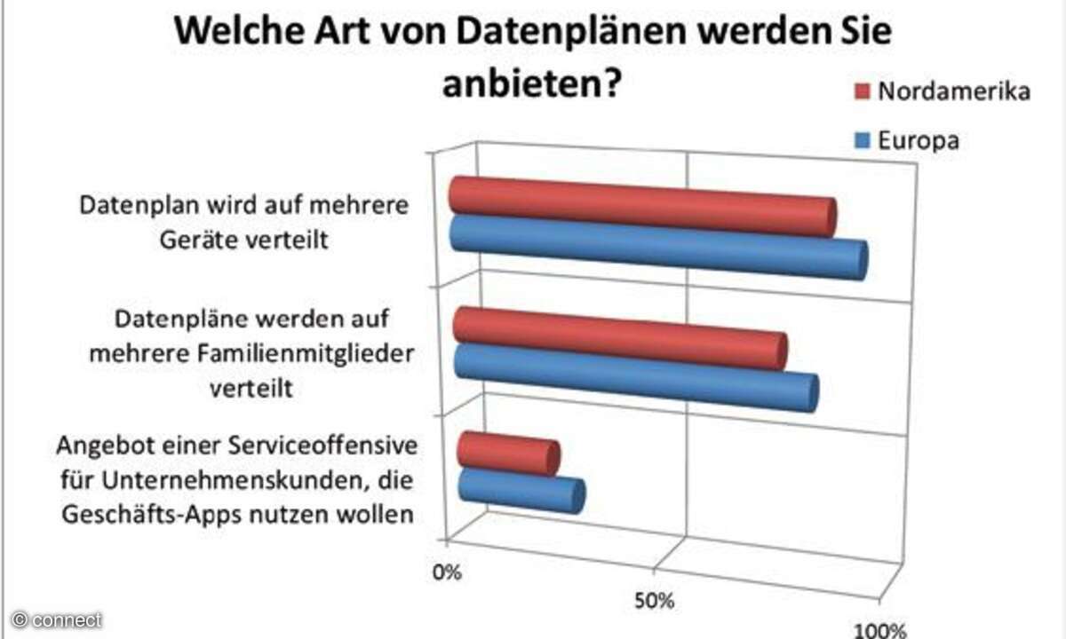 82 Prozent der Anbieter planen einheitliche Datentarife für mehrere Geräte, 67 Prozent der Befragten setzen auf Familientarife.