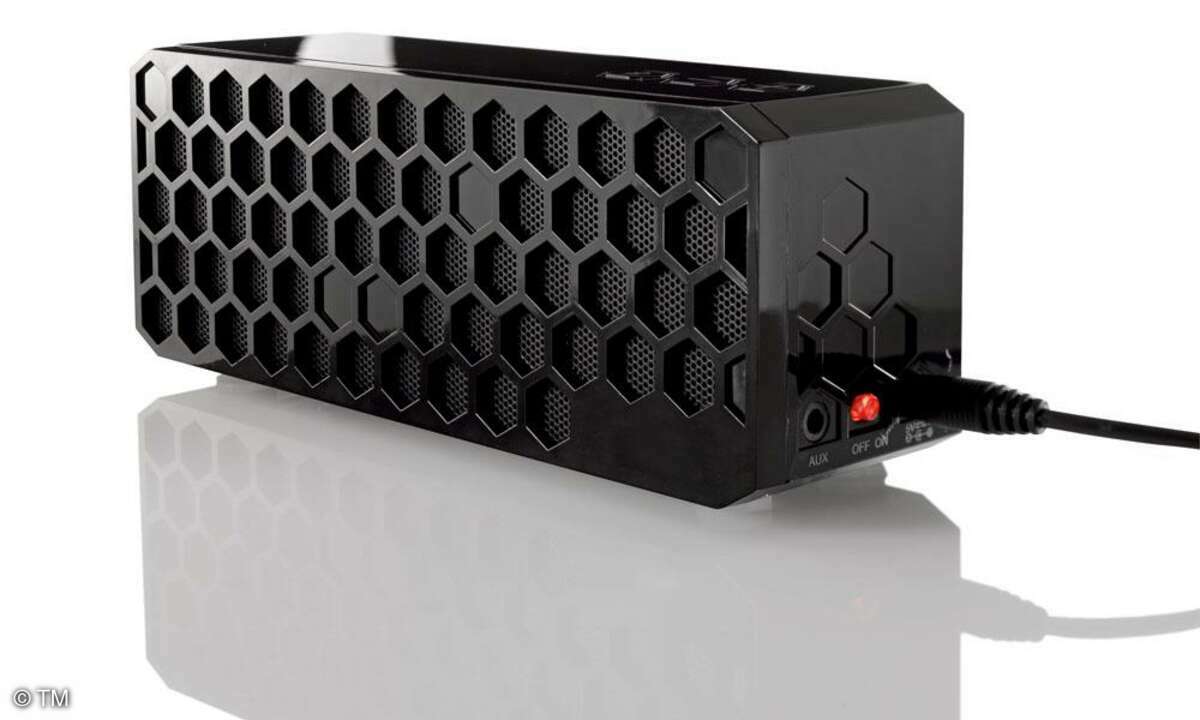 Was Tchibo Mini-Soundstation nennt, ist genau genommen ein schicker Radiowecker mit einem Steckplatz für iPhone oder iPod, über den gleichzeitig der Akku geladen wird. Ein Netzteil liegt bei, die Soundstation lässt sich aber auch mit zwei AAA-Batterien betreiben. Zur Steuerung ist eine einfache Fernbedienung im Lieferumfang enthalten. Der Klang war im Test recht ordentlich, wenn es auch ein bisschen an druckvollen Bässen fehlt. Als Wecker oder Küchenradio tut's die Soundstation allemal.