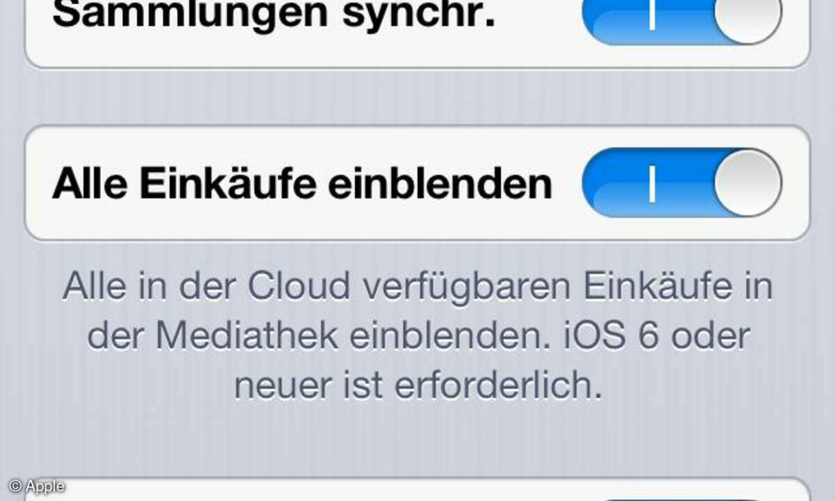 Umgekehrt funktioniert das natürlich genauso, auf dem PC gekaufte Musik wird also automatisch mit Apples Mobilgeräten synchronisiert. Dazu müssen Sie auf dem iPhone, iPad oder iPod Touch in die Einstellungen gehen und die automatischen Downloads unter iTunes & App Stores (nicht unter iCloud) einschalten.