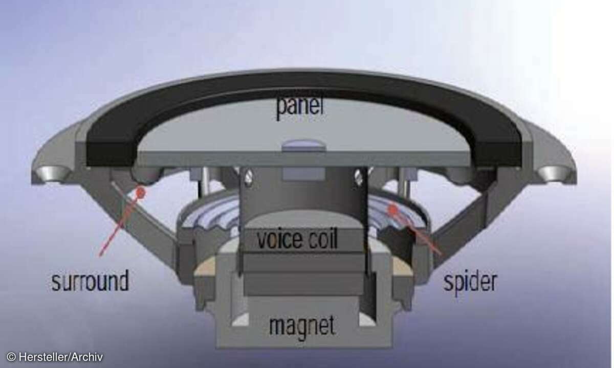 Die Flachmembran wird zentral angeregt - von der 7 Zentimeter großen Doppelschwingspule.