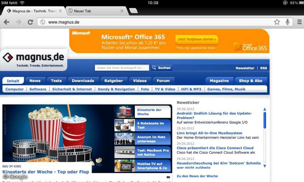 Obendrein hat Google seine Spracherkennung in den mobilen Chrome integriert. Das erleichtert die Eingabe von Suchbegriffen, während Web-Adressen weiterhin einzutippen sind. Um zwischen Tabs zu wechseln, tippen Sie entweder den zugehörigen Reiter am oberen Bildschirmrand an oder Sie wischen über den linken bzw. rechten Bildschirmrand. Chrome kann nahezu beliebig viele Tabs gleichzeitig öffnen, während Mobile Safari auf maximal zehn Stück beschränkt ist.