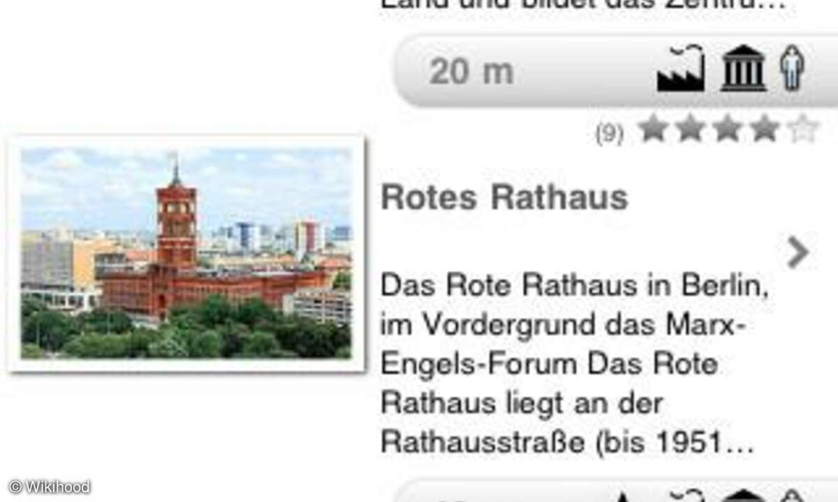 Mehr zum Thema: AppleFür das iPhone gibt es jede Menge kostenpflichtige Reiseführer. Eine Alternative ist die Gratis-App Wikihood, die sich aus Wikipedia bedient, um alle Lexikoneinträge zum aktuellen Aufenthaltsort anzuzeigen.