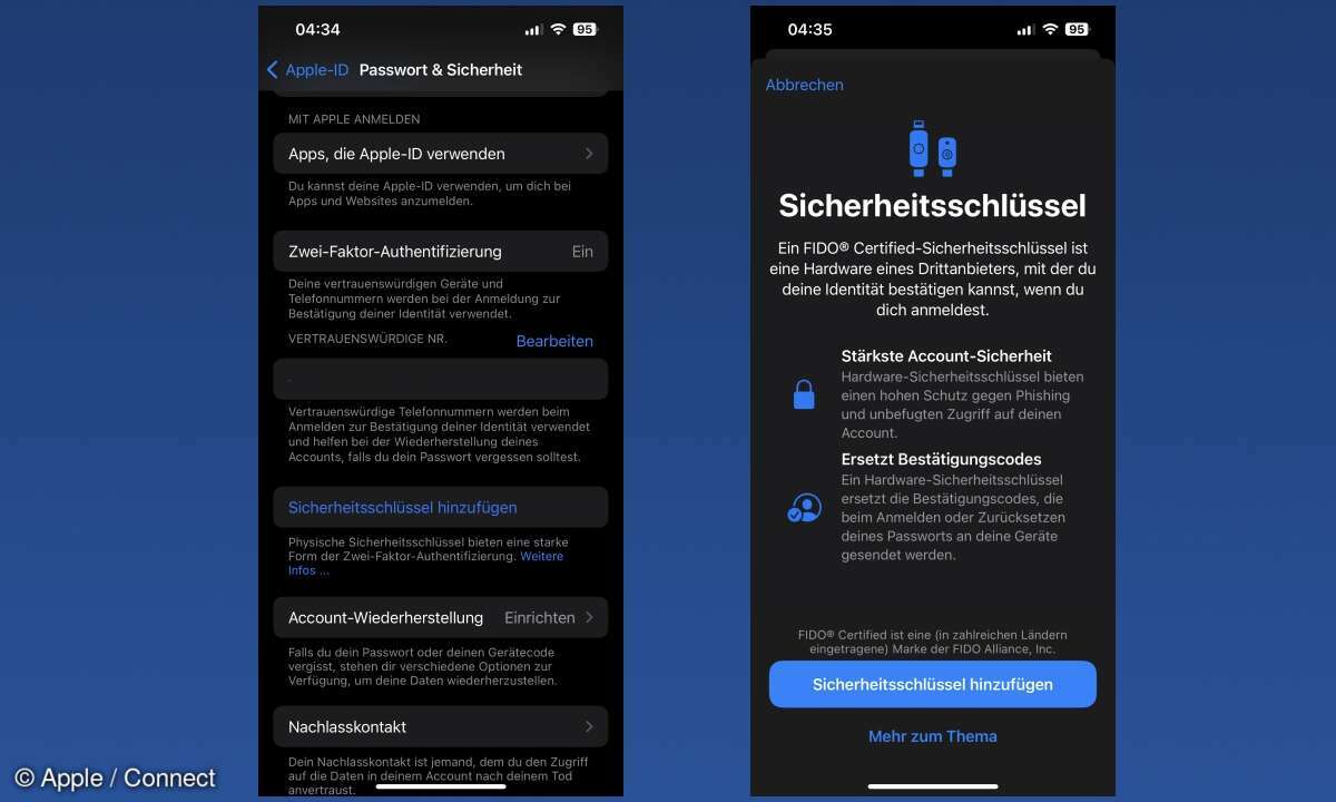 Mehr zum Thema: AppleMit iOS 16.3 hat Apple die sogenannten Sicherheitsschlüssel für Apple-IDs als zusätzliche Authentifizierungsmethode eingeführt. Doch was steckt überhaupt hinter dem Begriff?