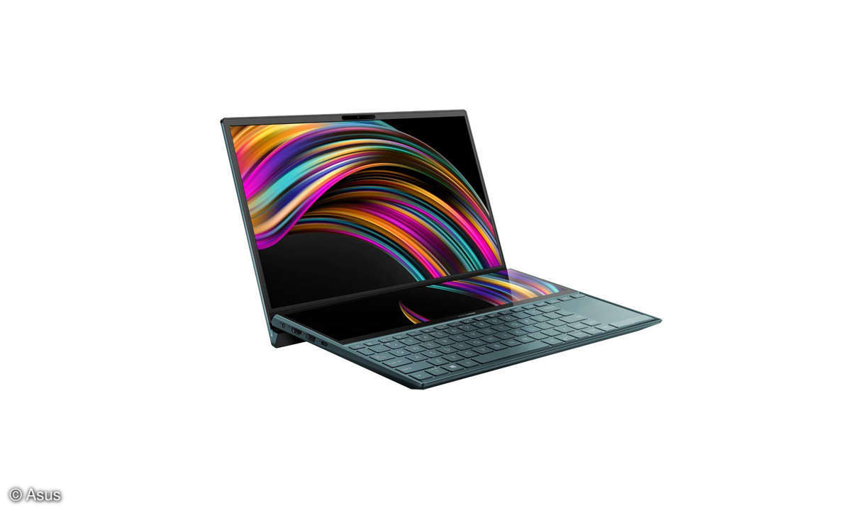 Beim Asus ZenBook Duo (die Business-Variante heißt ZenBook Pro Duo) erweitert das Screenpad Plus oberhalb der Tastatur die Arbeitsfläche um einen zusätzlichen Bildschirm. Inklusive dem virtuellen Nummernblock verfügt das leistungsstarke Notebook damit sogar über drei Touchscreens, was in Kombination mit der Stiftbedienung für einen deutlichen Produktivitätszuwachs sorgt.