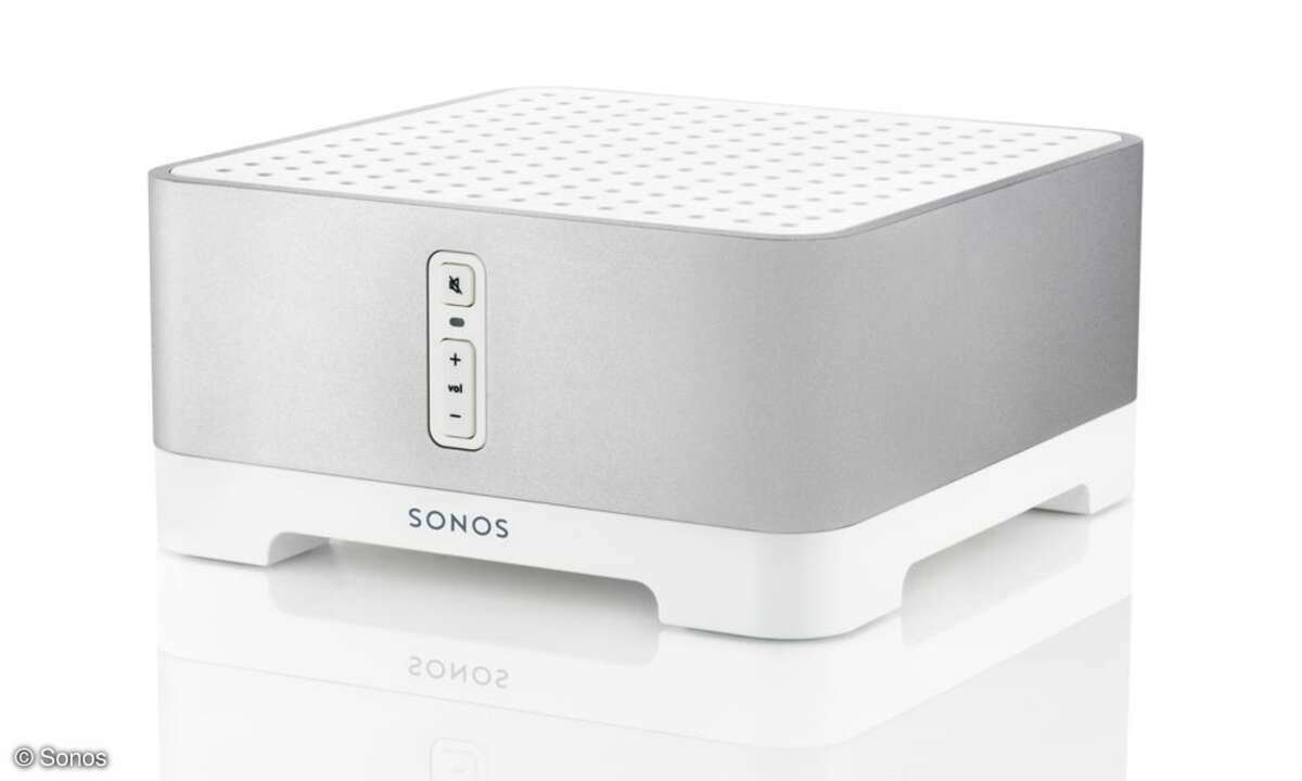Sämtliche Sonos-Geräte bringen einen Ethernet-Eingang mit, durch den zumindest von einem der Sonos Komponenten der Anschluss an den heimischen Router erfolgen muss. Ist diese kabelgebundene Verbindung vonstatten gegangen, wird aus dem Gerät, das am Router angebunden ist, per Knopfdruck der Multiplikator, der die musikalischen Inhalte im ganzen Haus drahtlos bereitstellt.