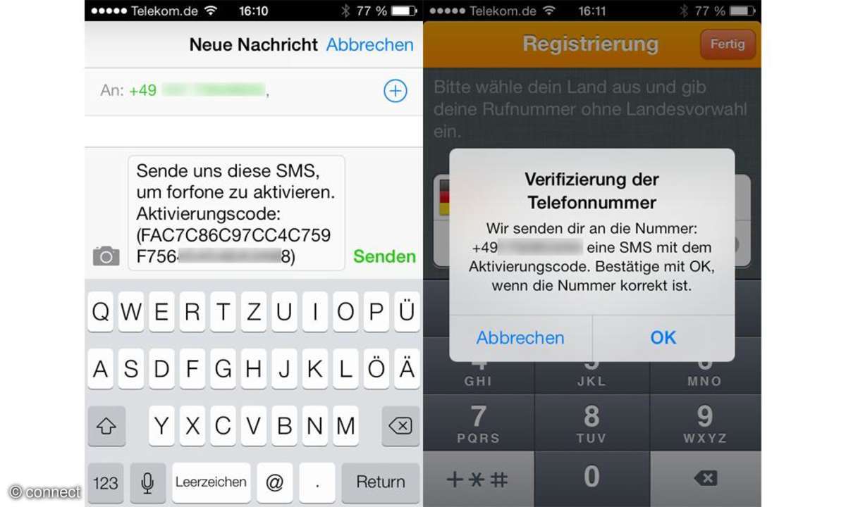 Gratis Text- und Bildnachrichten an andere App-Nutzer versenden und Sprachanrufe tätigen - das geht auch mit Forfone. Dazu gibt's im Moment 50 Freiminuten pro Monat ins deutsche Festnetz.