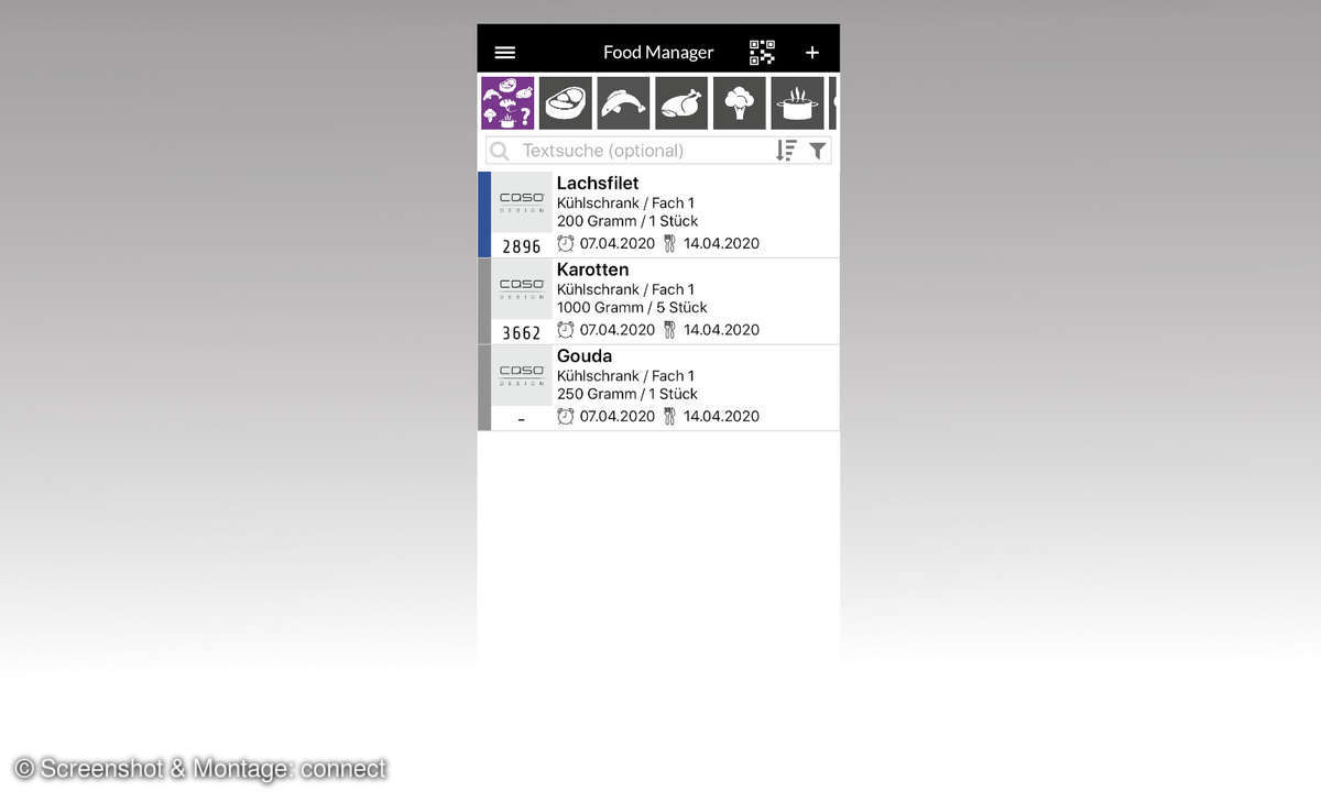 AnmeldungBeim CASO Food Manager ist eine Anmeldung per Mail notwendig. Zu Beginn legt man im Bereich „Food Manager“ alles an. Das bedeutet, als erstes wird ein „Kühlschrank“ angelegt, dann können verschiedene Kühlfächer, sogar mit Temperatur, hinzugefügt werden. Diese können beispielsw...