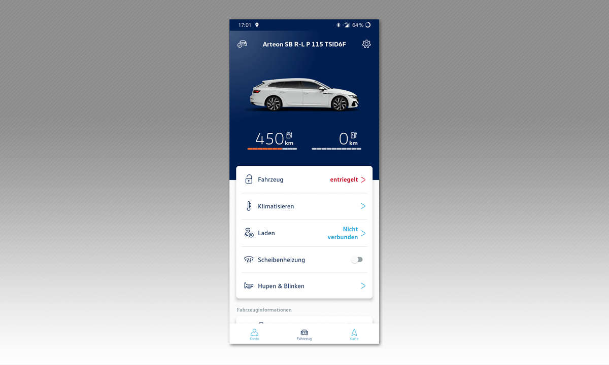 Was die We-Connect-App betrifft: Ja! Sie zeigt viele Informationen zum Fahrzeug und ist übersichtlich aufgebaut. Somit findet man schnell alle relevanten Daten. Über die App lässt sich zudem der Zugang zum Auto weitergeben. Wünschenswert wäre noch eine detailliertere Ladeüberwachung, und auch Adressen ans Fahrzeug zu senden funktionierte nicht immer zuverlässig.