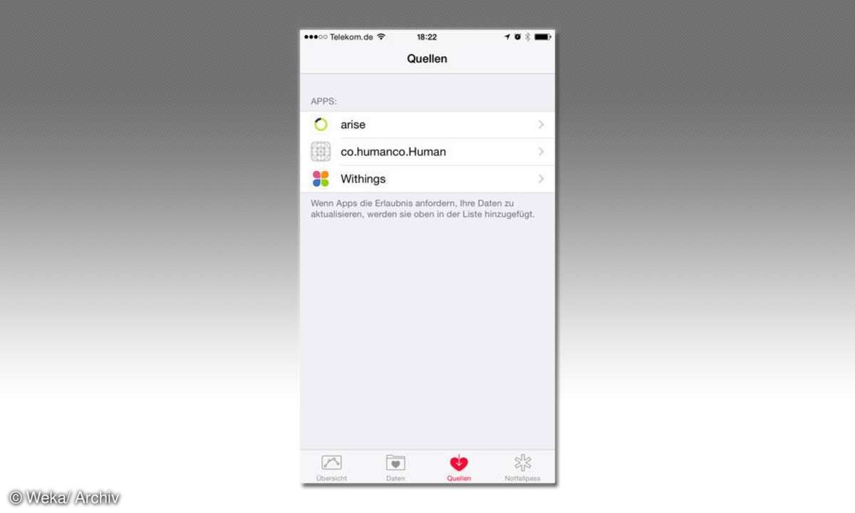 Zum Vermessen des eigenen Körpers gibt es zahlreiche Geräte und noch viel mehr Apps. Mit Health Kit hat Apple sein mobiles Betriebssystem iOS um eine Funktion erweitert, an die alle diese Datensammler andocken können. Das Ziel: Egal, auf welche Weise Sie Daten erfassen, sie landen alle in einer gemeinsamen Datenbank und können von hier aus allen anderen Apps zur Verfügung gestellt werden.