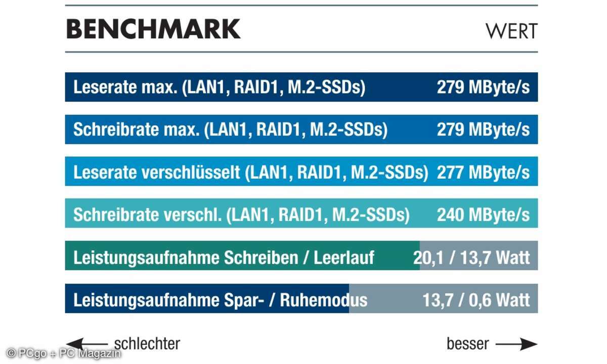 Natürlich sind gut 500 Euro für ein NAS-Leergehäuse plus den nach wie vor teuren NVMe-Laufwerken eine hohe Investition. Deshalb ist solch ein NVMe-NAS auch nur für die Anwender interessant, die über das lokale Netzwerk schnellstmöglich große Datenmengen übertragen möchten, um beispielweise Videos zu bearbeiten und dabei Datenraten von mehr als 250 MByte/s benötigen.