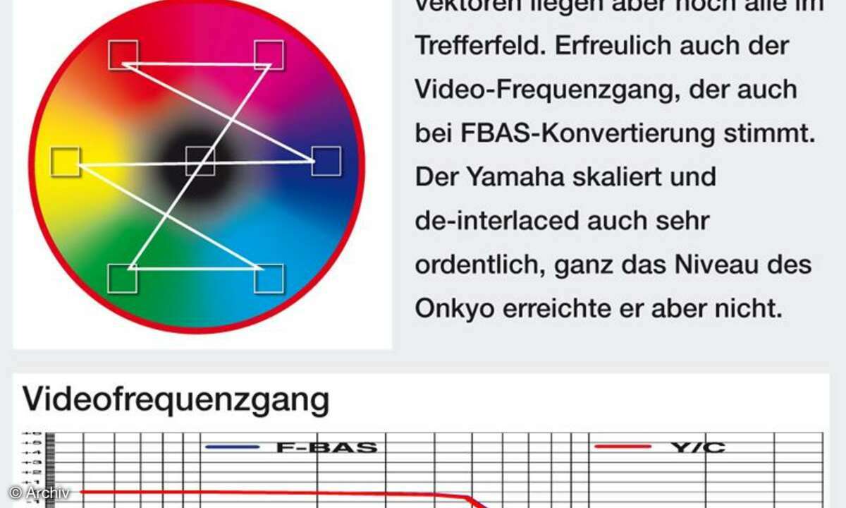 In puncto Video hat der Yamaha mit dem ABT 2010 von Anchor Bay einen neuen Prozessor bekommen, der nicht nur die gängigen Konvertierungen für Analog- und HDMI-Video, sondern theoretisch auch komplexes Bildtuning beherrscht. Vorläufig bedient sich der 3900 nur eines Kunststücks namens "Progressive Re-Processing".