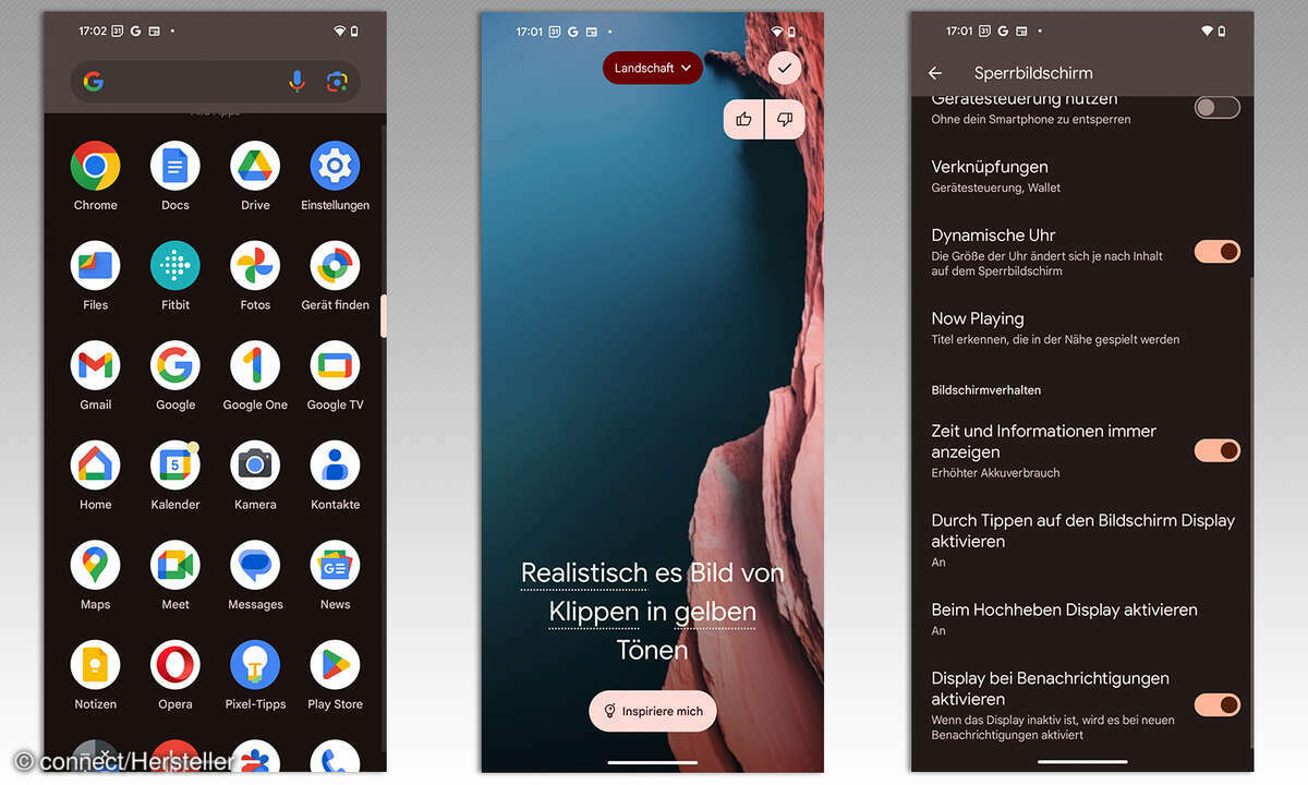 Positiv fällt auch das schlichte und schnörkerllose Gestaltung der Oberfläche auf, die in einem angenehmen Kontrast zu den bunt-verspielten Oberflächen asiatischer Hersteller steht. Aber in manchen Bereichen geht es nach unserem Geschmack zu schlicht zu: Das Always-on-Display etwa bietet kaum Anpassungsmöglichkeiten, man kann es entweder ein- oder ausschalten. Ein paar mehr Einstellungsmöglichkeiten würden dem Pixel 8a gut tun.