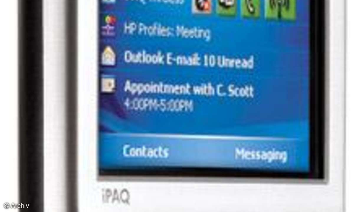 "Darf's ein bisschen weniger sein?" Was an der Ladentheke eine Seltenheit ist, dient IT-Herstellern zur erfolgreichen Kundenakquise: Die Jobs von Handy, PDA und Navisystem übernimmt ab sofort eine handliche Kombination aus den dreien - ein PDA-Phone mit GPS-Empfänger. Diese Feature-Kombination bietet beispielsweise das nagelneue HP-PDA-Phone iPAQ hw6915 für rund 700 Euro. Und damit dieses Mehr an Funktionen am Ende in weniger Gerät passt, wird die gesamte Elektronik in ein Gehäuse gequetscht, das nicht größer und schwerer ist als ein gewöhnlicher PDA. Einziger Unterschied zur herkömmlichen Bauweise: Der Touchscreen muss ein wenig der alphanumerischen Tastatur ausweichen und verkleinert sich auf quadratische 240 x 240 Pixel; üblich ist ein Format von 240 x 320 Bildpunkten. Für einen PDA ist die Anzeige etwas knapp bemessen, für ein Handy stattlich. So ist die Frage nach der Displaygröße ähnlich der nach dem halbvollen oder halbleeren Glas.