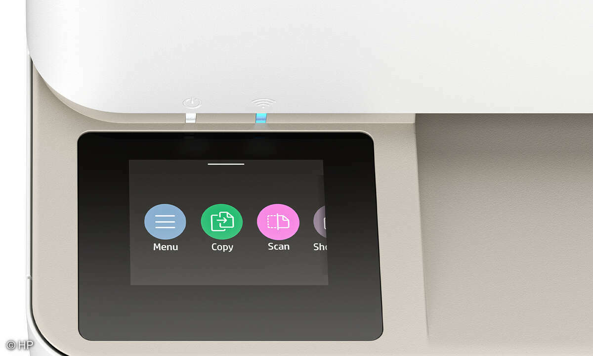 Die Einrichtung mit der HP Smart App verlief problemlos. Als Schnittstellen sind USB und WLAN vorhanden. Zudem eignet sich das HP-MFG für den Mobildruck per App, AirPrint oder Mopria (Android). Ein echtes Plus für die Bedienung ist das Touch-Display: Es nimmt die Befehle flott und präzise entgegen. Die Menüstruktur ist übersichtlich geordnet, die Bezeichnung der Funktionen allerdings nicht immer intuitiv zu verstehen. Dennoch lässt sich das MFG-Gerät dank Display auch ohne PC komfortabel nutzen.