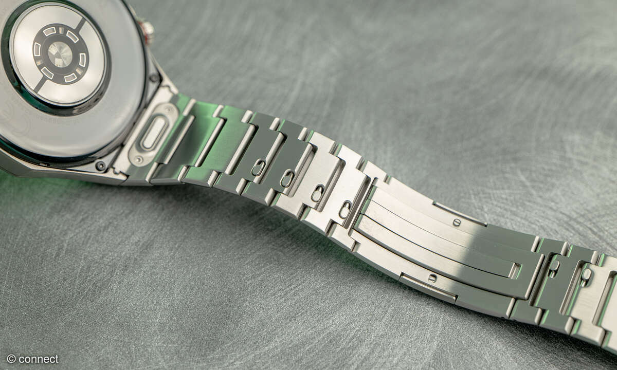 Die GT 5 Pro ist ohne Frage eine der hochwertigsten Smartwatches auf dem Markt. Ihre Verarbeitung erreicht das Niveau einer klassischen Uhr im Premiumsegment. Die Smartwatch trägt sich ansonsten sehr angenehm. Wer zum Sport lieber ein anderes Armband tragen möchte, findet bei Huawei eine große Auswahl. Das Band lässt sich zudem sehr einfach per Druckknopf wechseln.