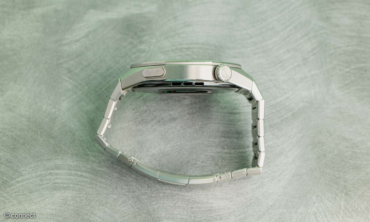 Die technischen Daten sind recht ähnlich, im Verglich zum Vorgänger. So misst die GT 5 Pro 46 Millimeter im Durchmesser, ist 11 Millimeter dick und bringt mit Titan-Armband 89 Gramm auf die Waage. Das ist etwas mehr als andere Smartwatches, aber dafür, dass das Armband aus Metall gefertigt ist, wiederum recht leicht. Der Wasserschutz liegt bei 5 ATM, Huawei hat die Uhr nach IP69 zertifizieren lassen. Doch nicht nur das: Die GT 5 Pro ist auch bis 40 Meter tauchzertifiziert. Man kann sie also als Tauchcomputer zum Flaschen- oder Freitauchen nutzen.