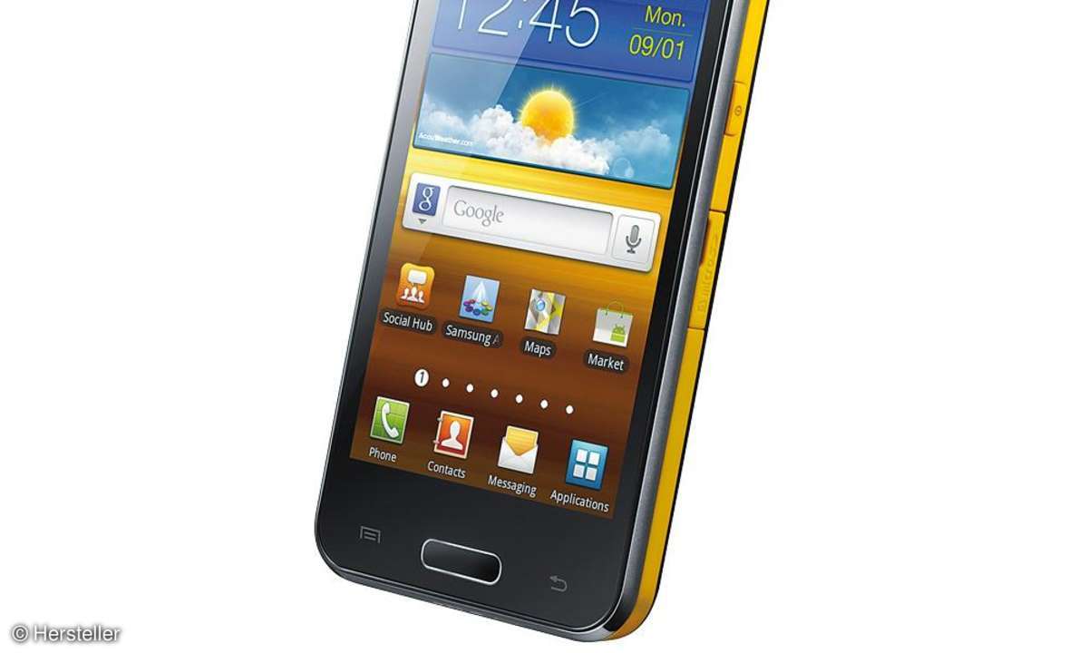 Die Optik für den Bildwerfer hat Samsung an der Front seines Smartphones platziert, dennoch liegt das Gerät gut ausbalanciert in der Hand. Überraschend ist zudem die perfekte Integration des Beamers, der tatsächlich erst auf den zweiten Blick auffällt. Die Abmessungen halten sich dabei ebenso im Rahmen wie das Gewicht von 147 Gramm - was angesichts des 4-Zoll-Displays und des großen Akkus bemerkenswert ist.