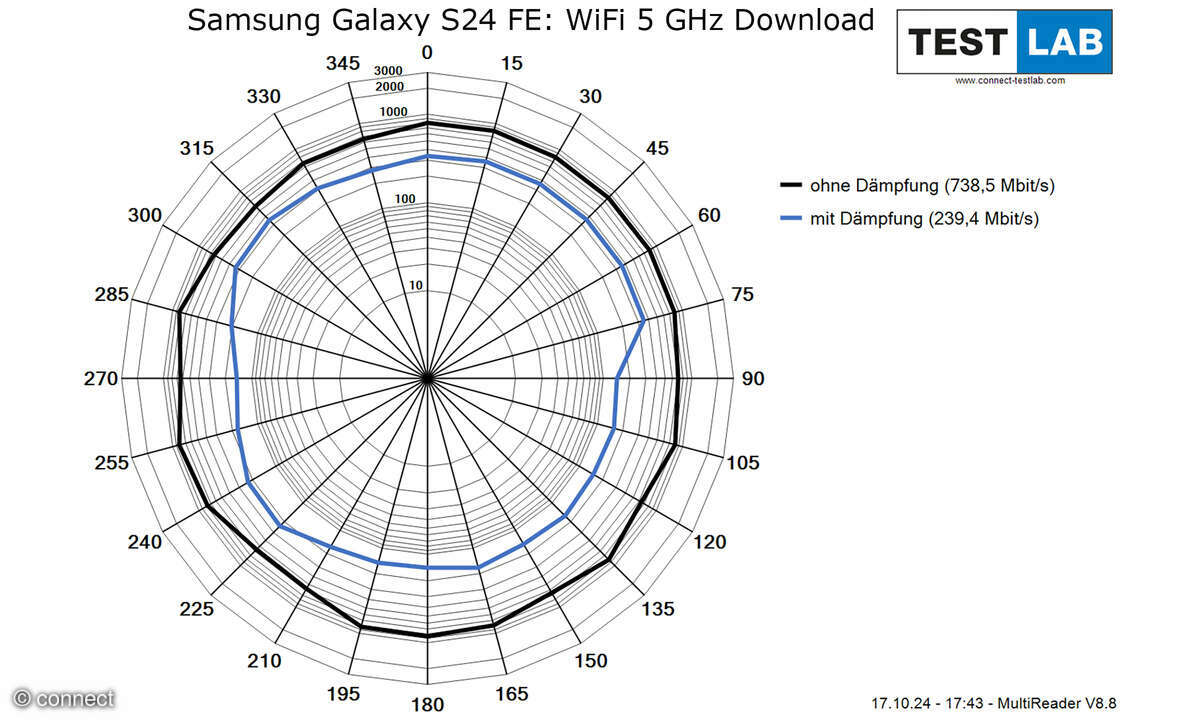 Die Funkeigenschaften können da nicht mithalten, die waren schon beim S23 FE eine Baustelle. Der Nachfolger macht es nicht besser, im Gegenteil: Die Sendeleistung ist über fast alle Bänder zu niedrig, auch bei der für die Erreichbarkeit wichtigen Empfindlichkeit besteht genereller Kalibrierungsbedarf. Wer an einem Ort mit einer schlechten Netzabdeckung wohnt, ist mit einem Xiaomi 14T (Pro) besser beraten.