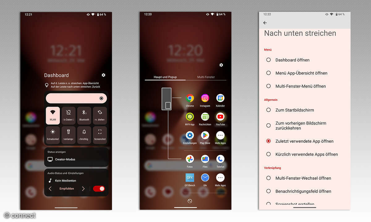 Eine dennoch praktisches Features des Xperia 1 VI ist Side Sense. Wer mit dem Finger nach links, oben oder unten über die virtuelle Seitenleiste streicht, öffnet damit eine Übersicht auf verschiedene Funktionen oder Apps. Welche Funktion ausgeführt wird, lässt sich zudem auch anpassen.