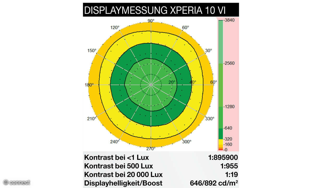 Die Displayränder fallen oben und unten besonders breit aus, weil Sony hier Stereo-Lautsprecher platziert, die frontseitig und somit direkt auf den Betrachter abstrahlen. Der Sound ist denn auch druckvoll und sehr klar. Aber Sony kann sich hier nicht von der Konkurrenz absetzen, ein Galaxy A55 schafft eine höhere Lautstärke.