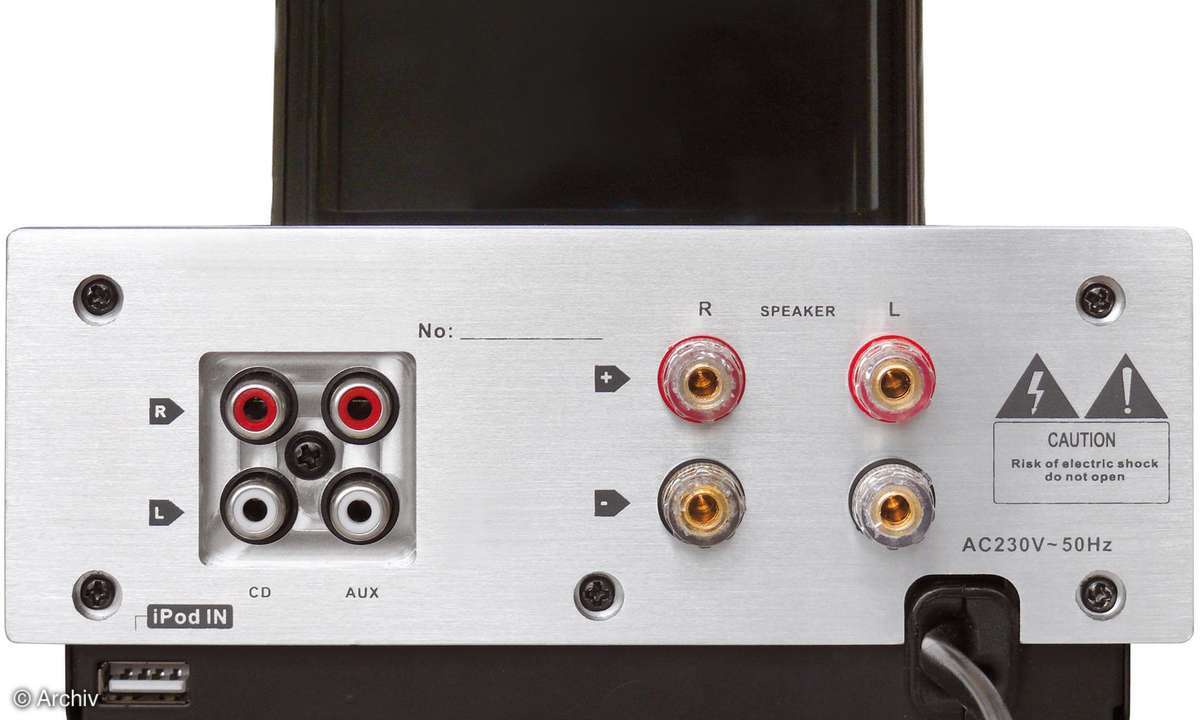 Um die erste Frage, die sich Skeptikern beim Anblick des 307 stellen muss, gleich zu Anfang zu beantworten: Der kleine Glamour-Amp macht nicht nur Show, sondern hat technische wie klangliche Substanz. Der Schein trügt nur an einer Stelle, nämlich dem mit "iPod" beschrifteten USB-Anschluss: Es ist kein digitaler Eingang für den Taschenspieler, sondern ein zusätzlicher Analog-Input im USB-Look, der nur mit dem mitgelieferten Spezialkabel funktioniert. Macht aber nichts, zumal Dynavox auch noch einen richtig praktischen Gummisockel für den Player mit in den Karton steckt.